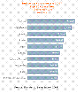 Os primeiros 20 classificados por IQV: Lisboa 205,07; Albufeira 181,04; São João da Madeira 168,57; Porto 161,05; Sintra 158,73; Lagos 158,51; Cascais 148,57; Lagoa 143,95; Vila Franca de Xira 142,82; Aveiro 142,81; Loulé 141,43; Portimão 140,04; Oeiras 135,78; Faro 134,13; Coimbra 133,45; Marinha Grande 131,56; Vila Real de Santo António 130,86; Amadora 130,32; Palmela 128,77; Sines 128,65.